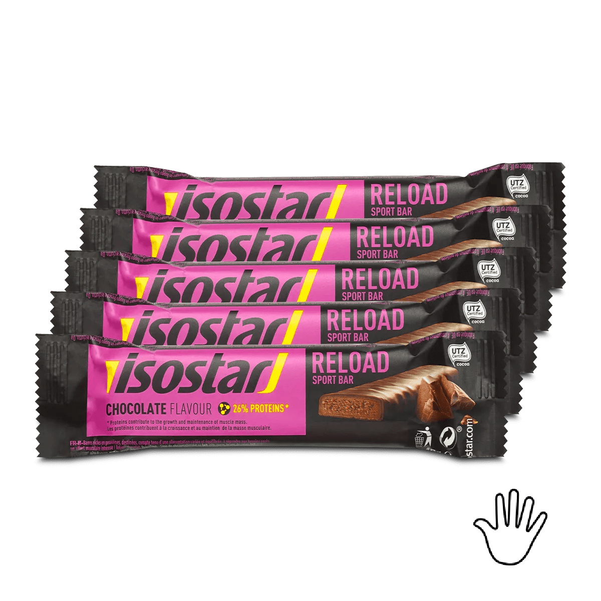 Isostar Reload Barre favorise la récupération grâce aux protéines qu’elle renferme. Cette barre est le complément idéal d’Isostar Reload Drink Chocolate après le sport.